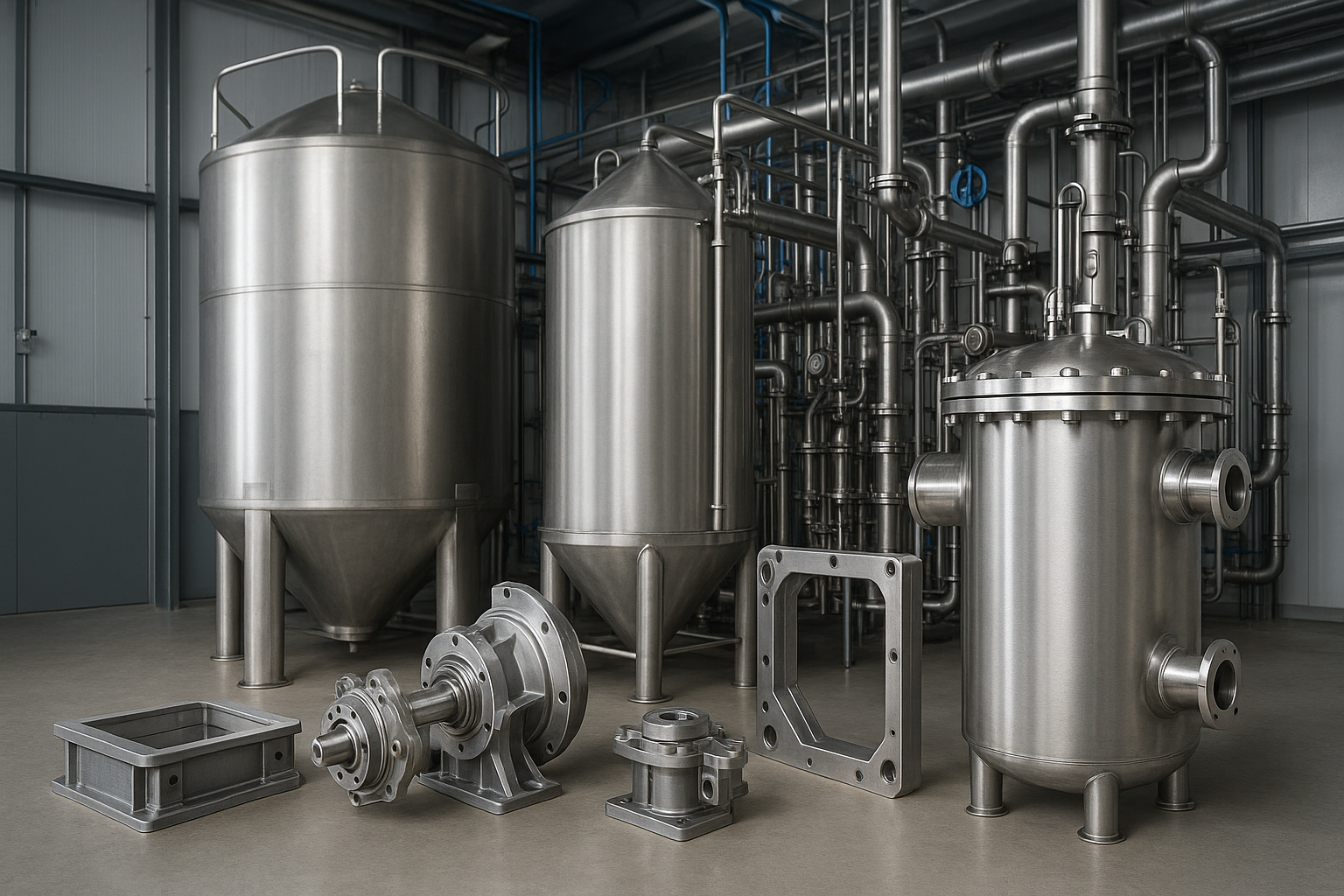 Serbatoi inox, attrezzature di processo, telai per macchinari e strutture per impianti produttivi.