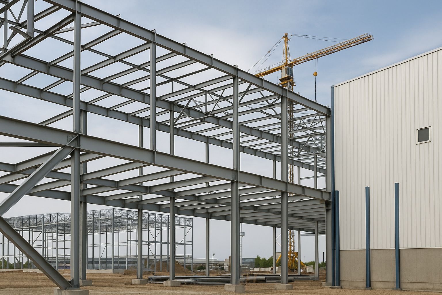 Strutture in acciaio saldate, telai portanti, componenti per edifici industriali, magazzini e opere infrastrutturali.
