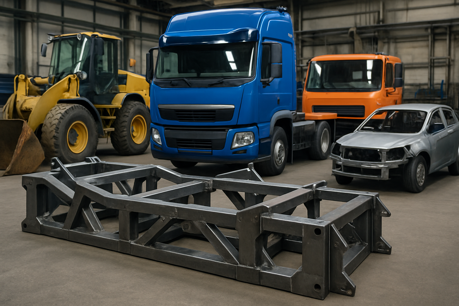 Telai, supporti, attrezzature per linee produttive e componenti destinati a veicoli industriali e macchine movimento terra.
