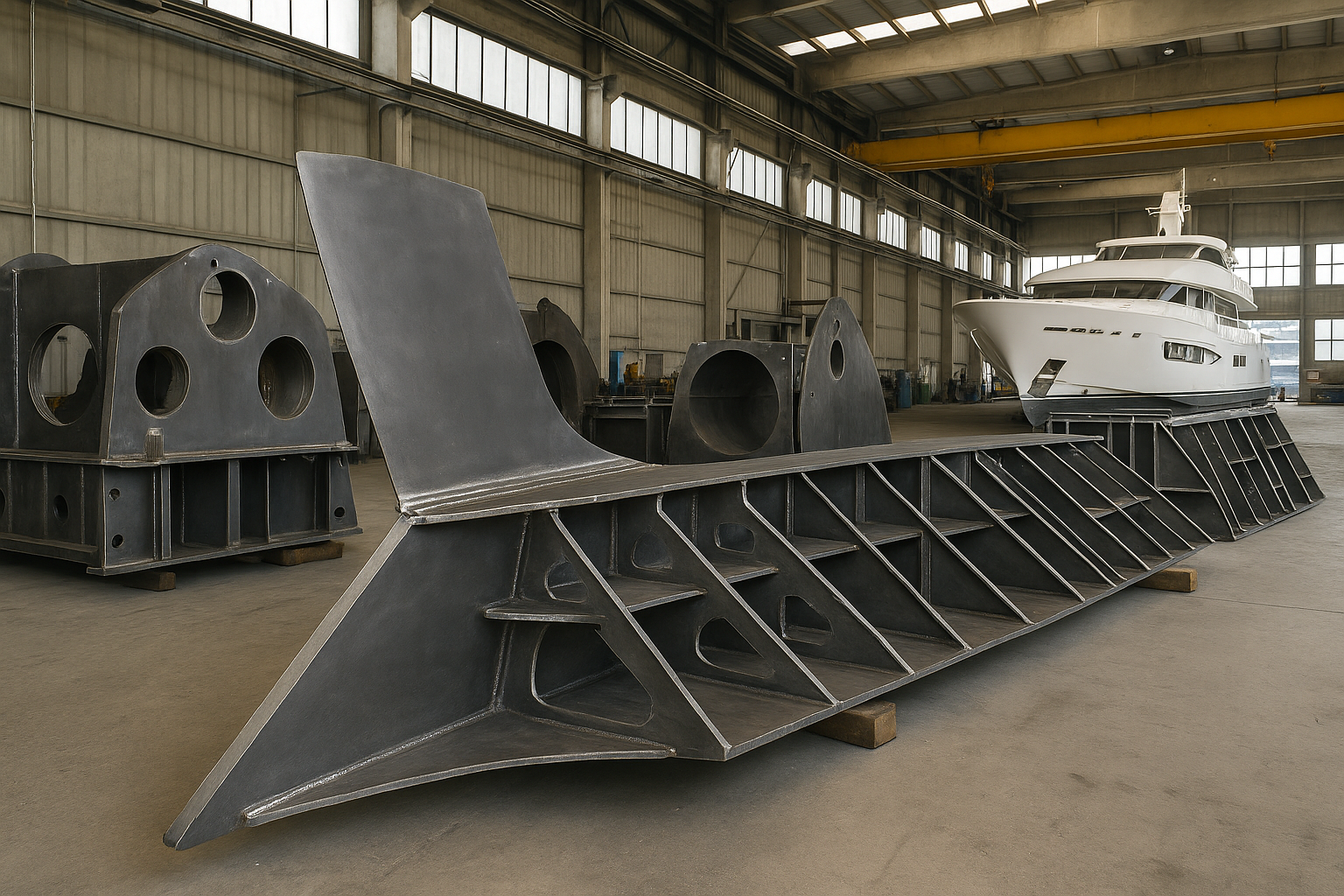 Chiglie, strutture portanti, supporti tecnici e componenti in acciaio resistenti all’ambiente marino.